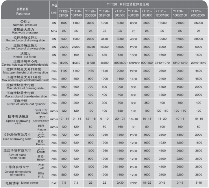 本系列液壓機(jī)具有空程速度快、效率高、能耗小、壓邊和拉伸力均可調(diào)等特點(diǎn),是薄板成形的理想設(shè)備。